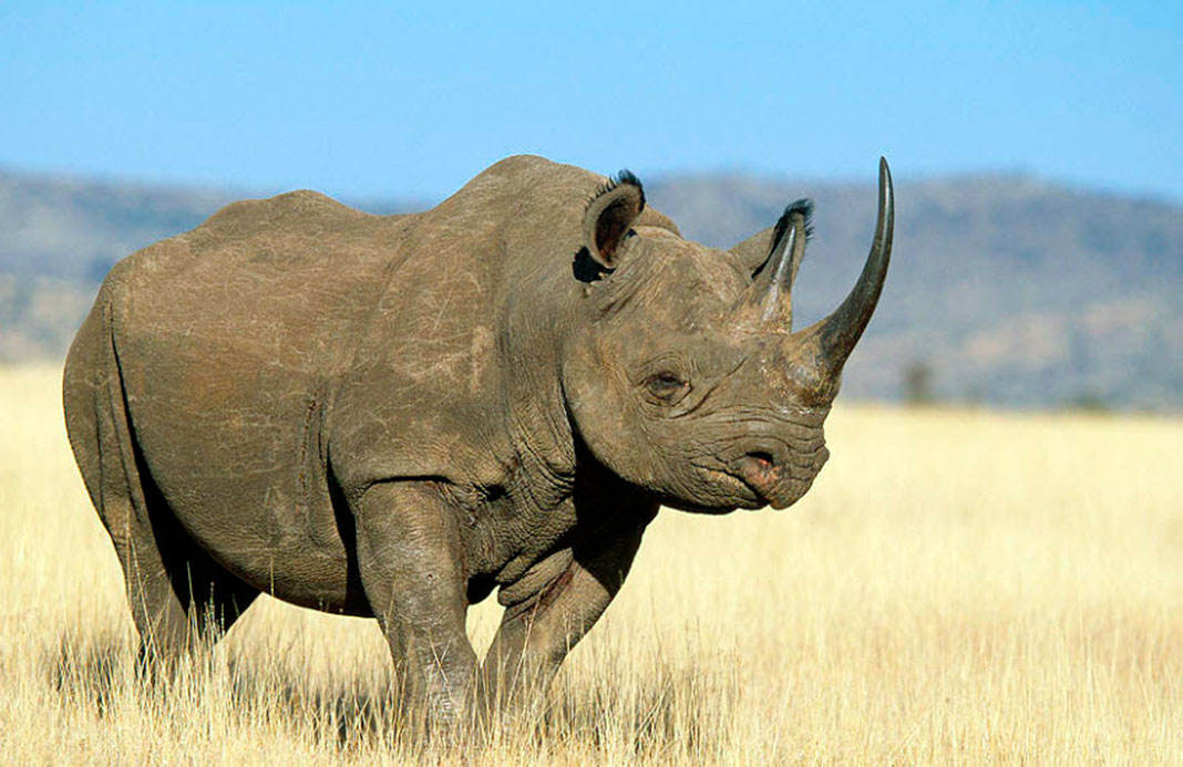 Чорний носоріг — ще один вид, який знаходиться на межі вимирання. Один із його підвидів, західний чорний носоріг, вже був проголошений вимерлим Міжнародним союзом охорони природи. Ці тварини мешкають на південному сході Африки, охоплюючи окремі райони Ботсвани, Малаві, Мозамбіку, Намібії та Південної Африки. Однією з характерних рис чорного носорога є вигнута форма рота. Хоча вважалося, що вони мають поганий зір та покладаються на слух і нюх, дослідження показали, що їхній зір відносно добрий, приблизно на рівні кролика. Впродовж більшої частини 20-го століття континентальний чорний носоріг був найчисленнішим серед усіх видів носорогів. У 1900-му році у Африці нараховувалося кілька сотень тисяч особин. Однак, у другій половині 20-го століття їхня чисельність впала до приблизно 70 000, а наприкінці 1960-х років вони скоротилися до всього 10 000-15 000 особин. На початку 1990-х їхня кількість знизилася до 2500, а в 2004-му повідомлялося, що залишилося лише 2410 чорних носорогів.
