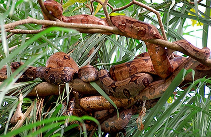 Найнебезпечнішим є вид, що мешкає тільки в Бразилії – ботропойд. Сильна отрута вбиває людину протягом години (миші та деякі інші ссавці помирають за кілька секунд після укусу). Острівний підвид набагато отруйніший, ніж материкові родичі. Вчені кажуть, що 10 тисяч років тому острів був частиною материка, а відокремився після раптового підняття рівня моря. При цьому тварини та плазуни, що лишилися в ізоляції, за цей час еволюціонували не так як їх родичі з материка. На узбережжі ходить легенда, начебто страшних змій завезли на острів пірати для охорони незліченних скарбів. Ще до 1920-х років на Зміїному жили місцеві мешканці, але нині страхітливий острів повністю безлюдний. Кажуть, останніми жителями були хранитель маяка і його сім'я, але змії прослизнули через вікна та вбили всю родину. Наразі влада та представники військово-морського флоту періодично відвідують маяк і ретельно стежать за тим, щоб жоден шукач пригод не наближався занадто близько до острова.
